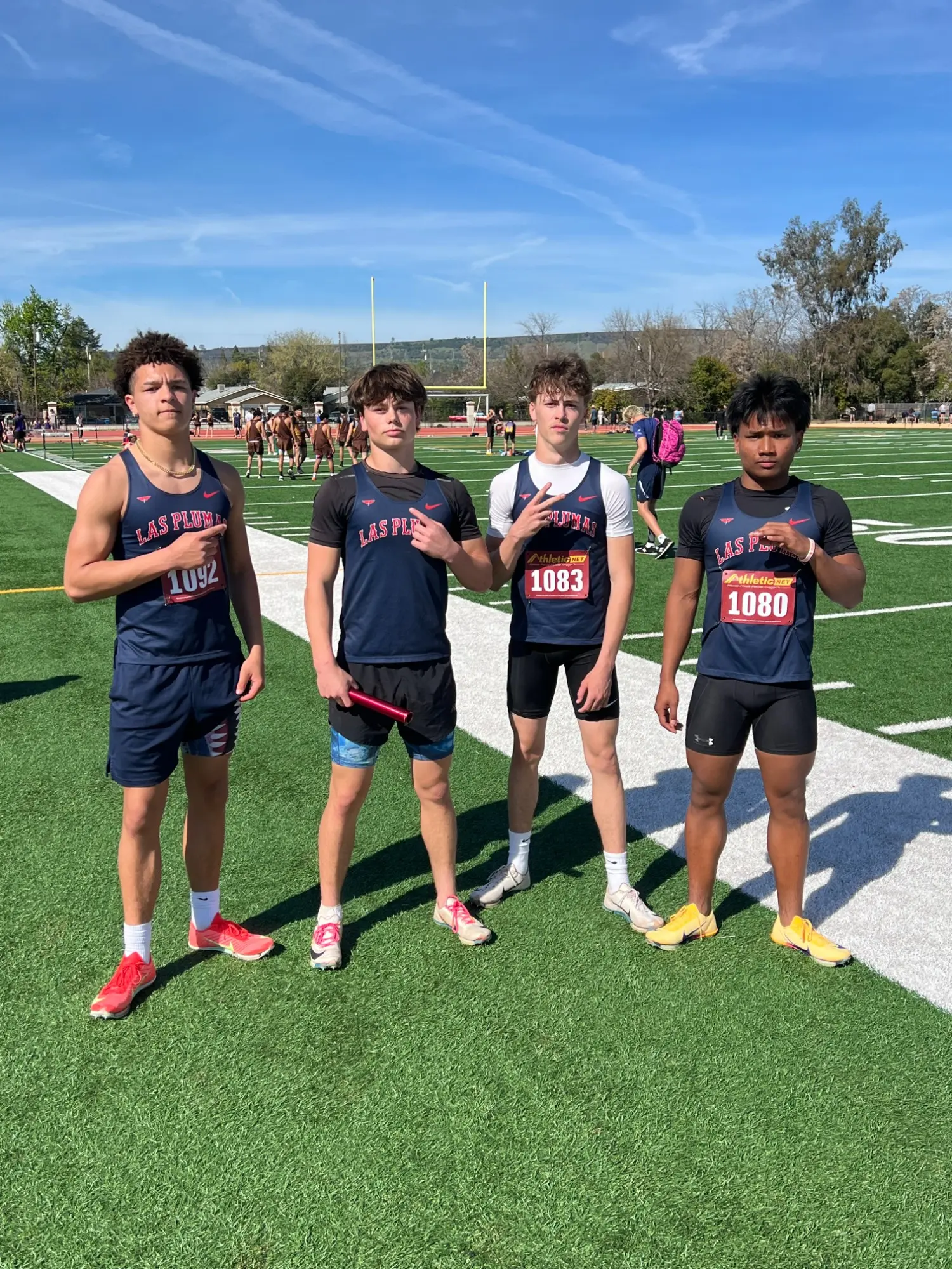 Speed Reigns: Las Plumas Relay Sets the Pace in the Section” Posted March 12, 2026 Brandon, Kaden, Ayden and Prem run 44.76 in the 4 x 100 relay.